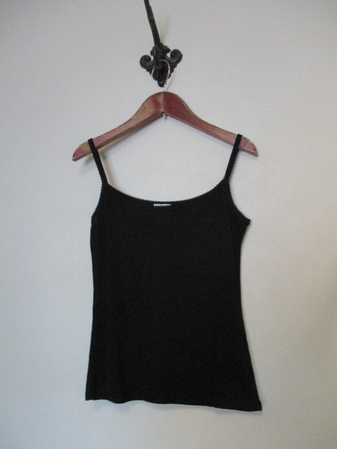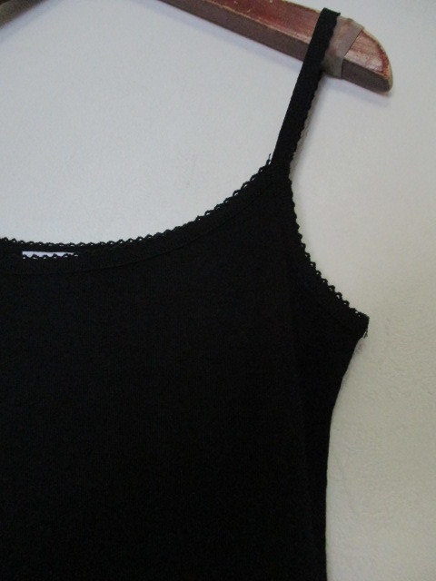 商品紹介 | 黒のキャミソールです。 衿周りと肩周りは細いレースのようになっています。 レーヨンポリエステル素材で、テロンとした柔らかい生地です。 《素材》 レーヨン60% ポリエステル40% |