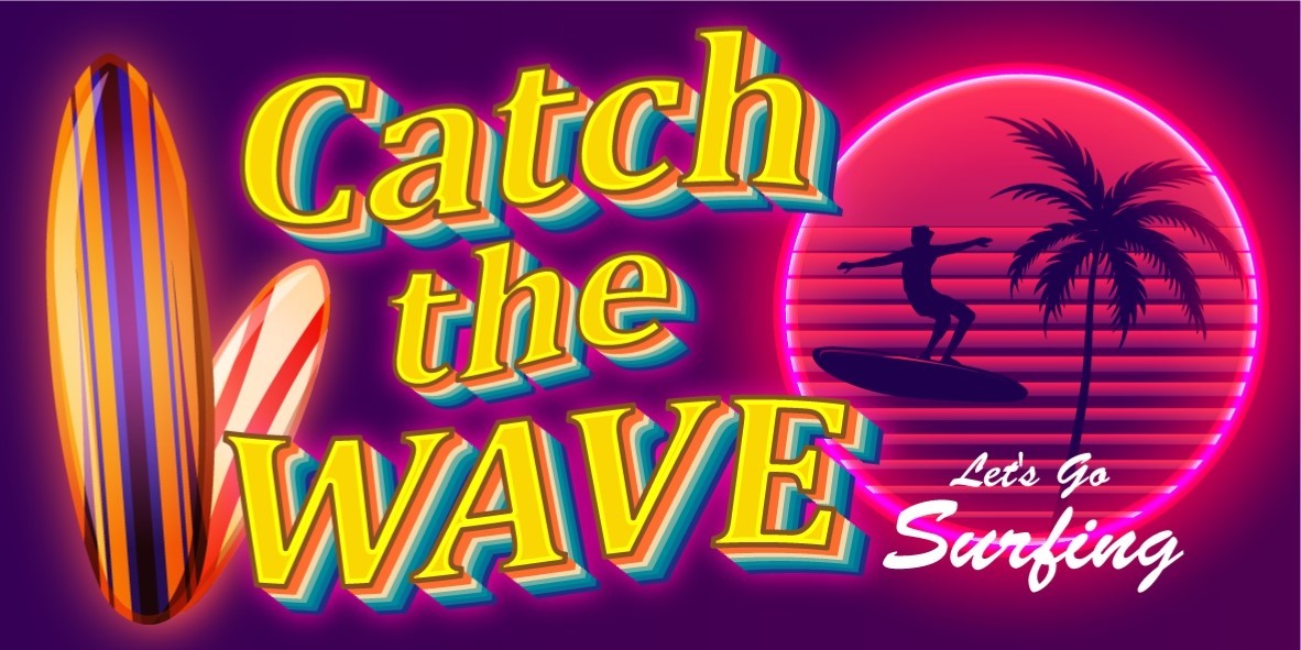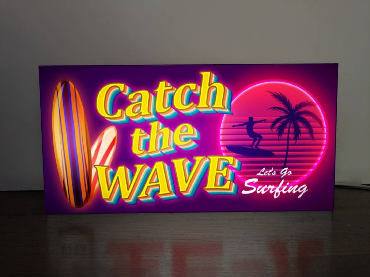 「Catch the WAVE」サーフデザインの電飾看板です★ご自宅・店舗・ガレージなどのちょっとした寂しいスペースに★