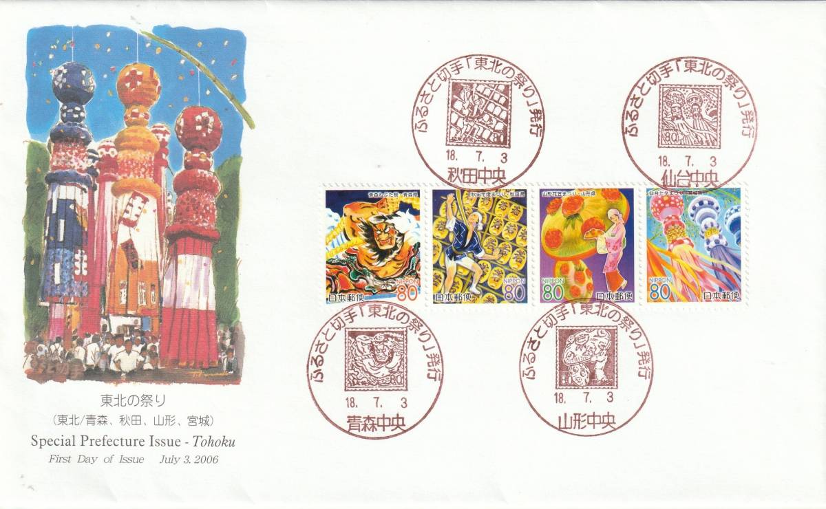 FDC 2006年 東北の祭り  80円4貼4消し  絵寺田敬