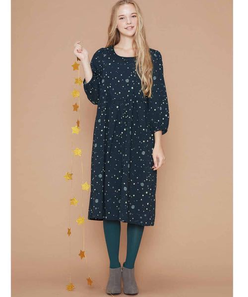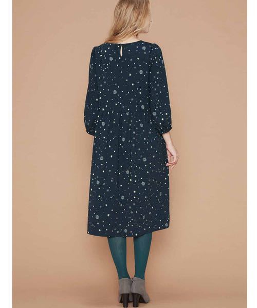静かな冬の夜空が神秘的。大きくカーブした切り替えにギャザーを寄せたガーリーなワンピに、満点の星空プリント。ロマンティックなデザインはパーティーシーンにぴったり。テロンとしたとろみのある生地だから、しわになりにくいのもうれしいね。付け衿でガーリーにまとめたり、インにタートルを重ねてカジュアルダウンしたコーデもお似合いです。素材についてとろんとほどよい厚みの生地なので、カラダのラインを拾いすぎずにキレイなシルエットです!プランナーよりイチオシポイント・オススメの着こなし星空の柄がとにかくガーリー!大人っぽいけれど華やかさもあるので、黒タイツなどでシックにまとめてもいいし、差し色タイツでカジュアルにあわせても◎。