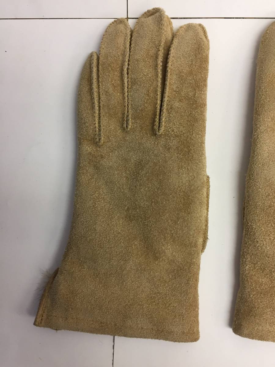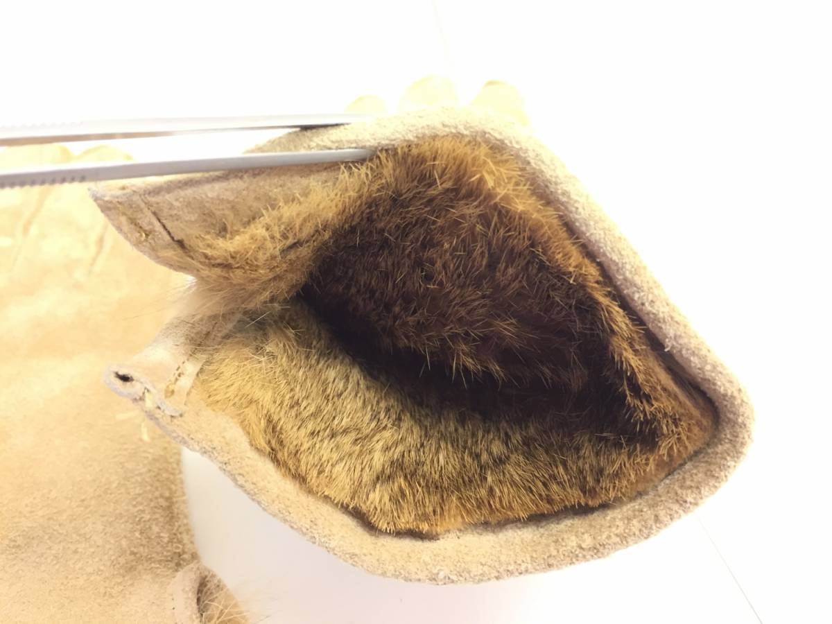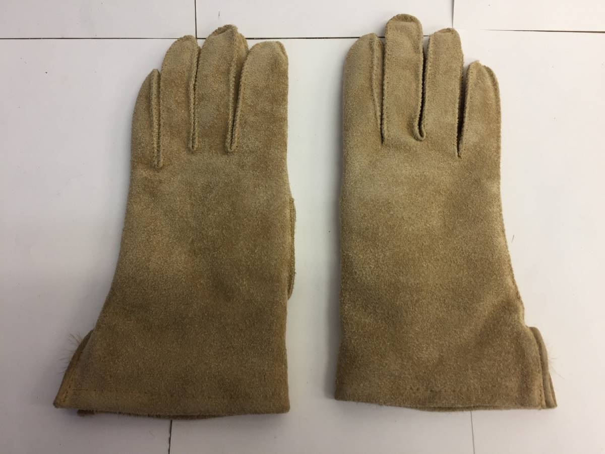 ◎サイズ 全長:約24cm 左右セットで重量:約 133g ※箱込み:約196g ※多少誤差は生じると思います。 -------------- ◎状態 箱に入っていたので未使用に見えたのですが 断定出来ないので中古とお考え下さい。 画像8のように、試しに手の小さめな成人女性に 試着してもらいました。ちょうど良いサイズと 言っていたので、おそらく女性用だと思われます。 画像10のタグによると、おそらくこの手袋は 本革という意味が書いてあると思います。 読み間違いでしたら申し訳ありません。 画像をよくご参照ください。 手袋の内側はもこもこのファーのような毛が指先まで 入っており、さらさらした良い手触りがします。 しかし古い匂いがします。 もしかしてカビでしょうか。 画像に写っています箱ですが、そのままの状態ですと 厚さが3cm以上になり送料が高くなりますので、 箱を潰した状態で梱包させていただきます。 ご理解ご了承ください。 --------------