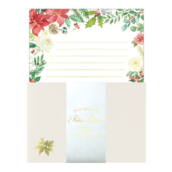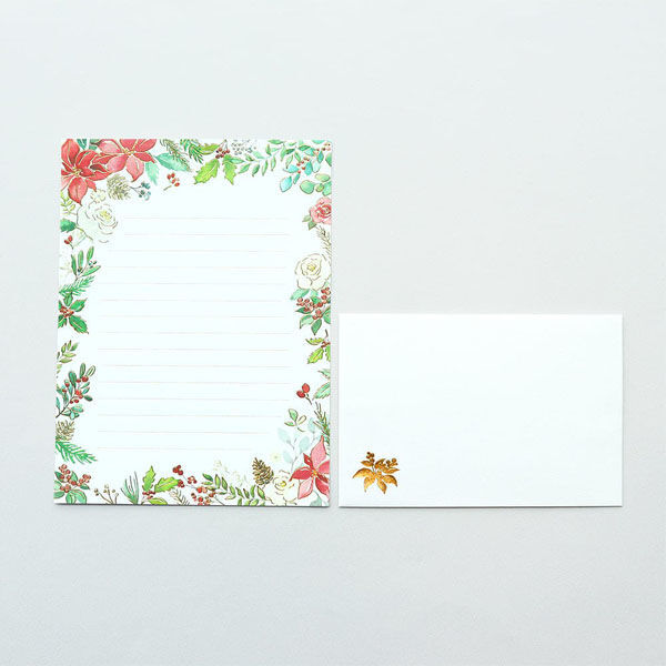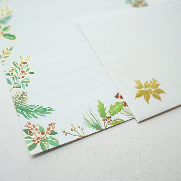 【即決】◆レター静かな森 煌びやかなレターセット 箔押し加工◆フラワーデザイン 花 便箋6枚/封筒3枚/宛名シール3枚 // TL101