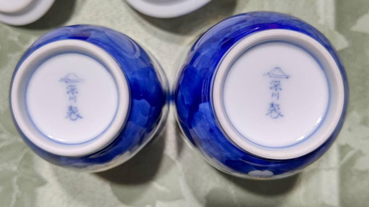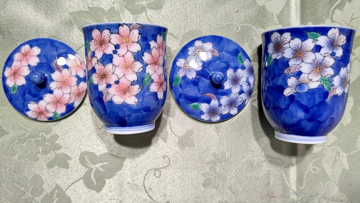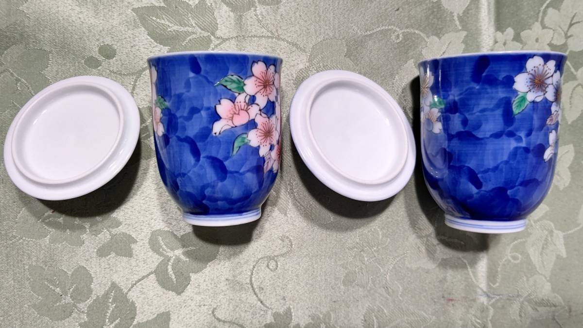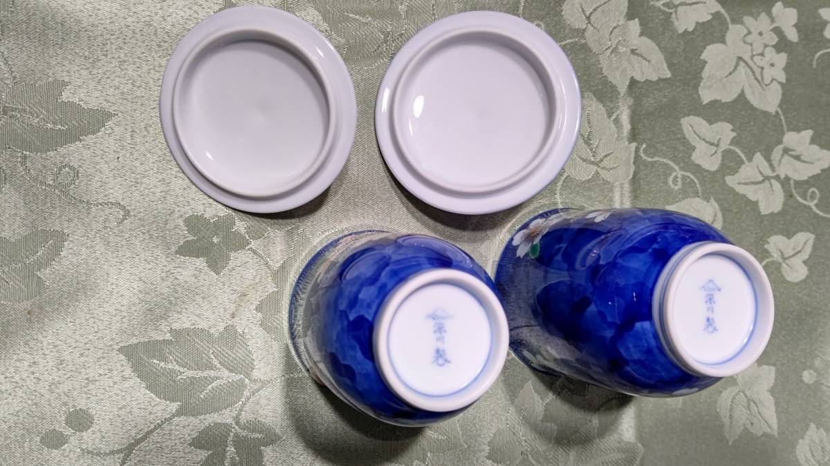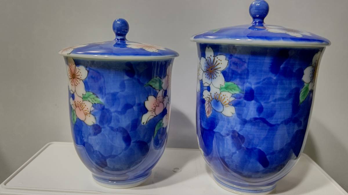 宮内庁御用達 深川製磁 蓋付き夫婦湯み茶碗(7.2×11㎝&6.5×9.5㎝)桜花模様 美品