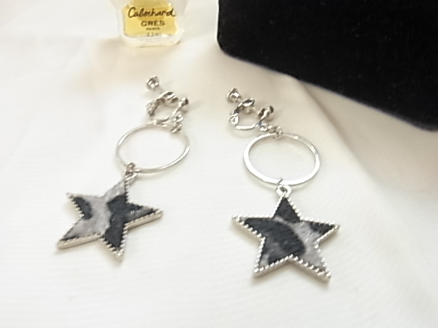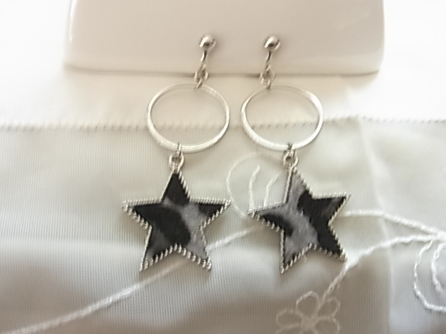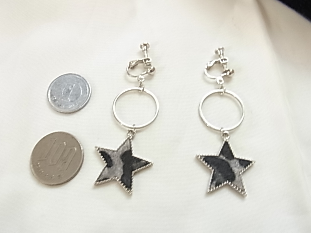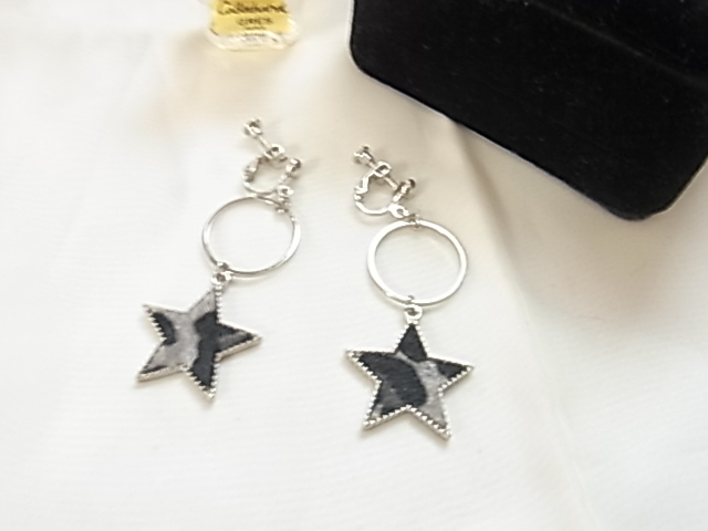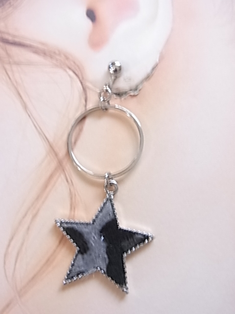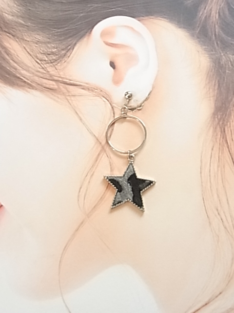 星 スターのモチーフ 輪っか リング フープに連なる2トーン配色のカラーの星がお洒落 耳元で揺れるイヤリング♪