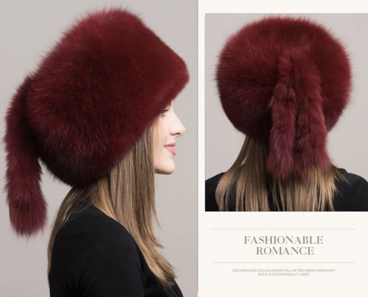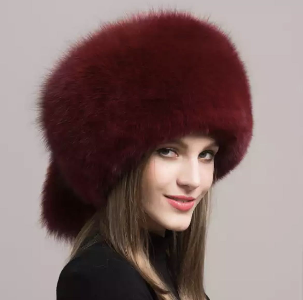 キツネの毛皮防寒帽子 ロシアン帽子 防寒 帽子 暖かい 毛皮 冬用 キツネ 狐 魅力的 レッド 赤 2708