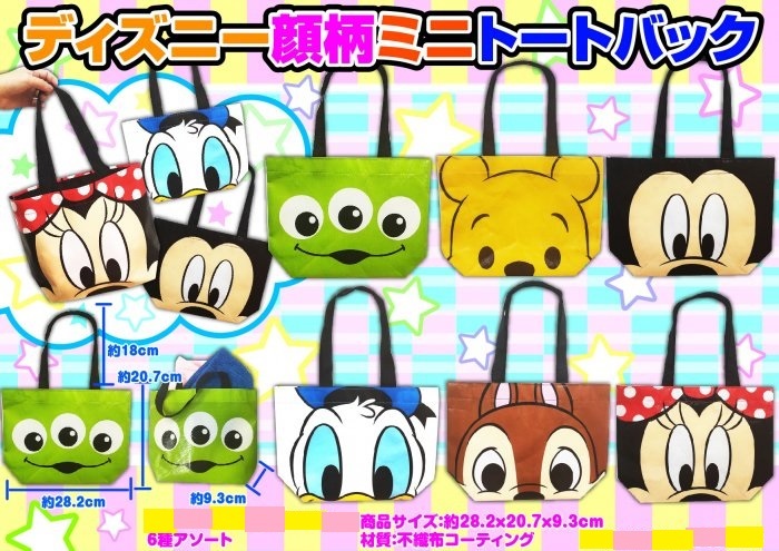 未使用 ディズニー 顔柄 ミニ トート バック 不織布コーティング エイリアン (検索) ミッキー ミニー ドナルド プーさん チップ
