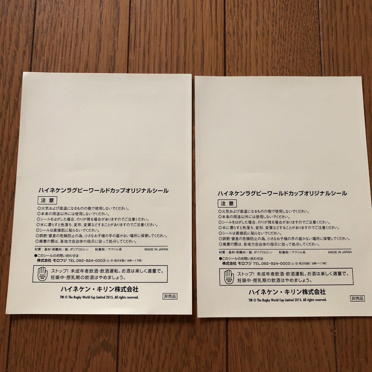 非売品 ハイネケン ラグビーワールドカップ オリジナルシール 2枚