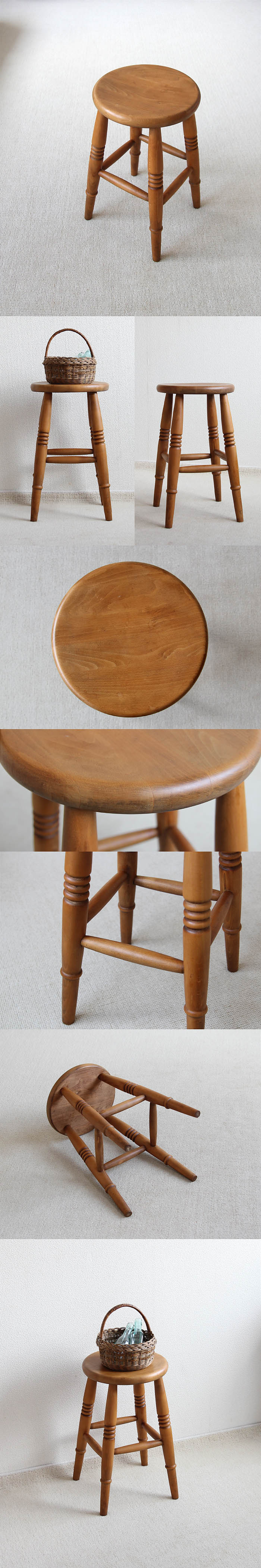 イギリス ヴィンテージ ウッドスツール 木製椅子 丸スツール アンティーク 家具「ナチュラル」V-934