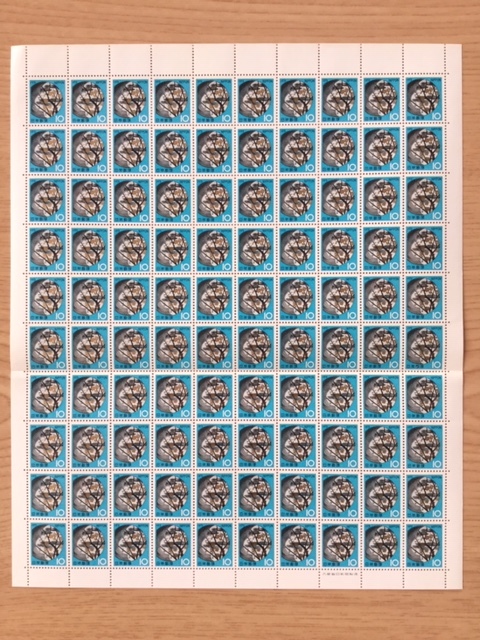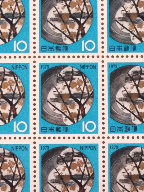 年賀切手 昭和48年用 色絵土器皿(尾形乾山作) 1シート(100面) 切手 未使用 1972年