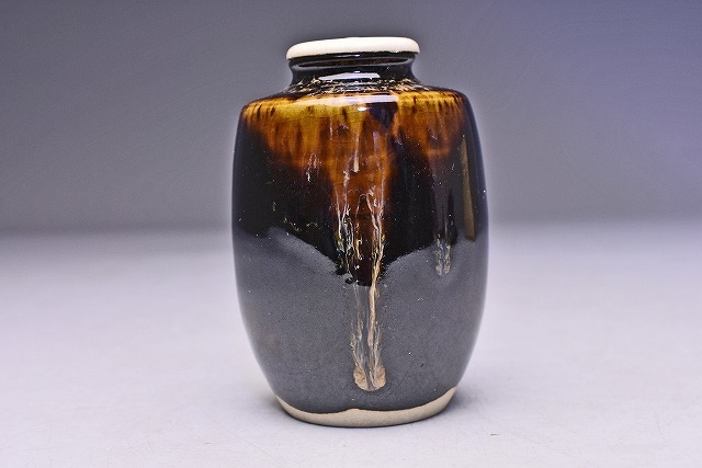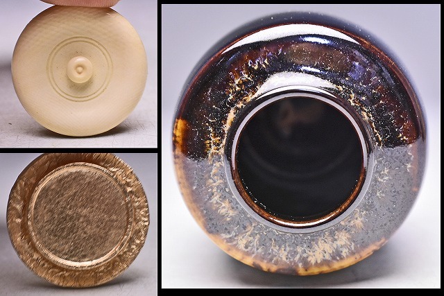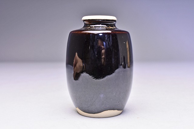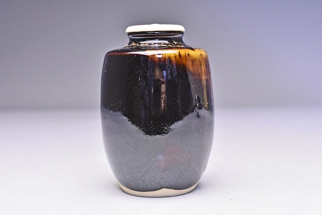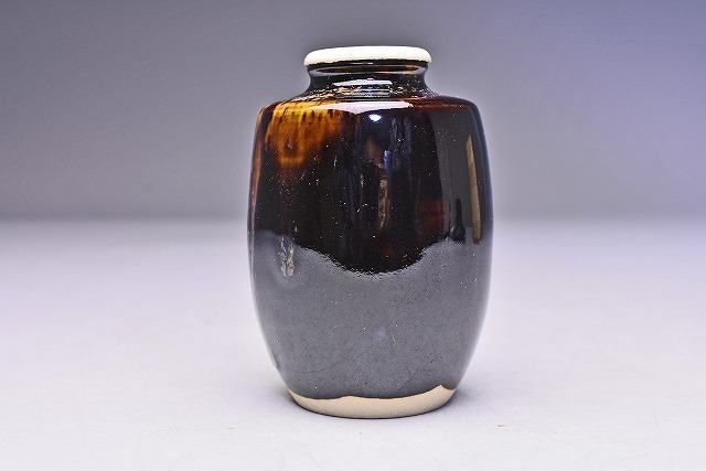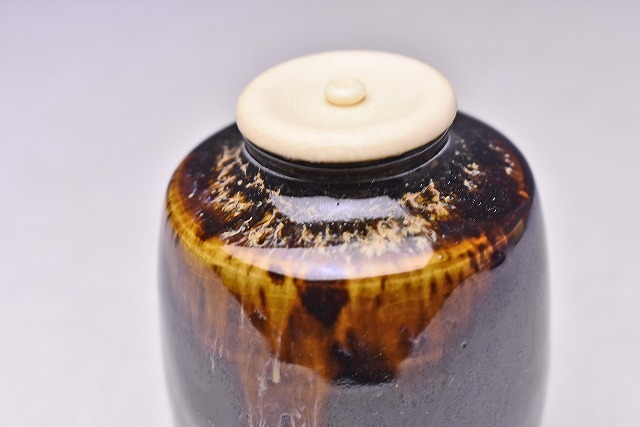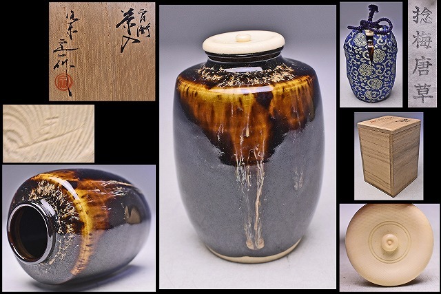 桶谷定一 ★ 肩衝 茶入 ★ 共箱 仕覆 ( 捻梅唐草 ) ★ 造形良く気品ある逸品 ★ 京焼 茶道具 ★