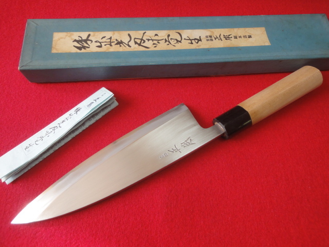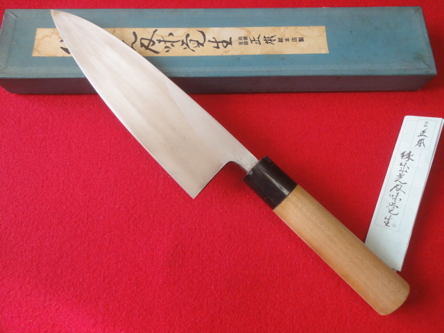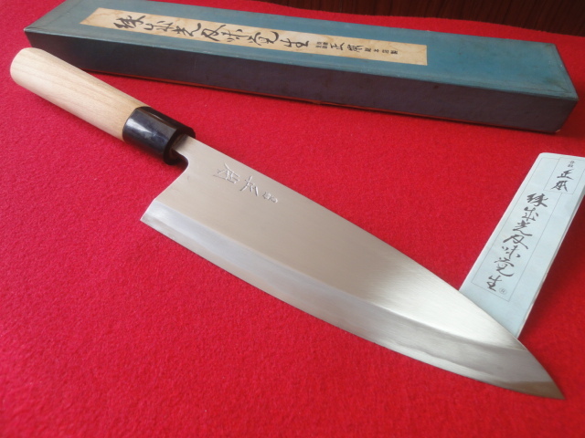 【正本】包丁 刃渡21.8㎝ 全長37.8㎝ 峰厚8.5mm ※箱付 ※片刃 中古品 全国一律送料1100円