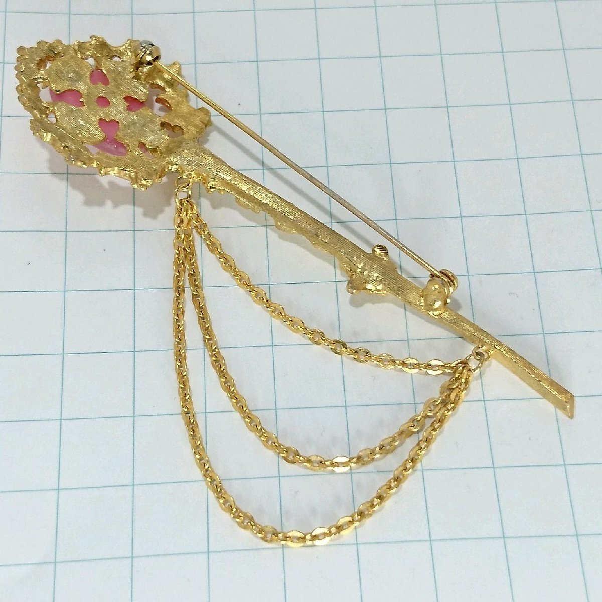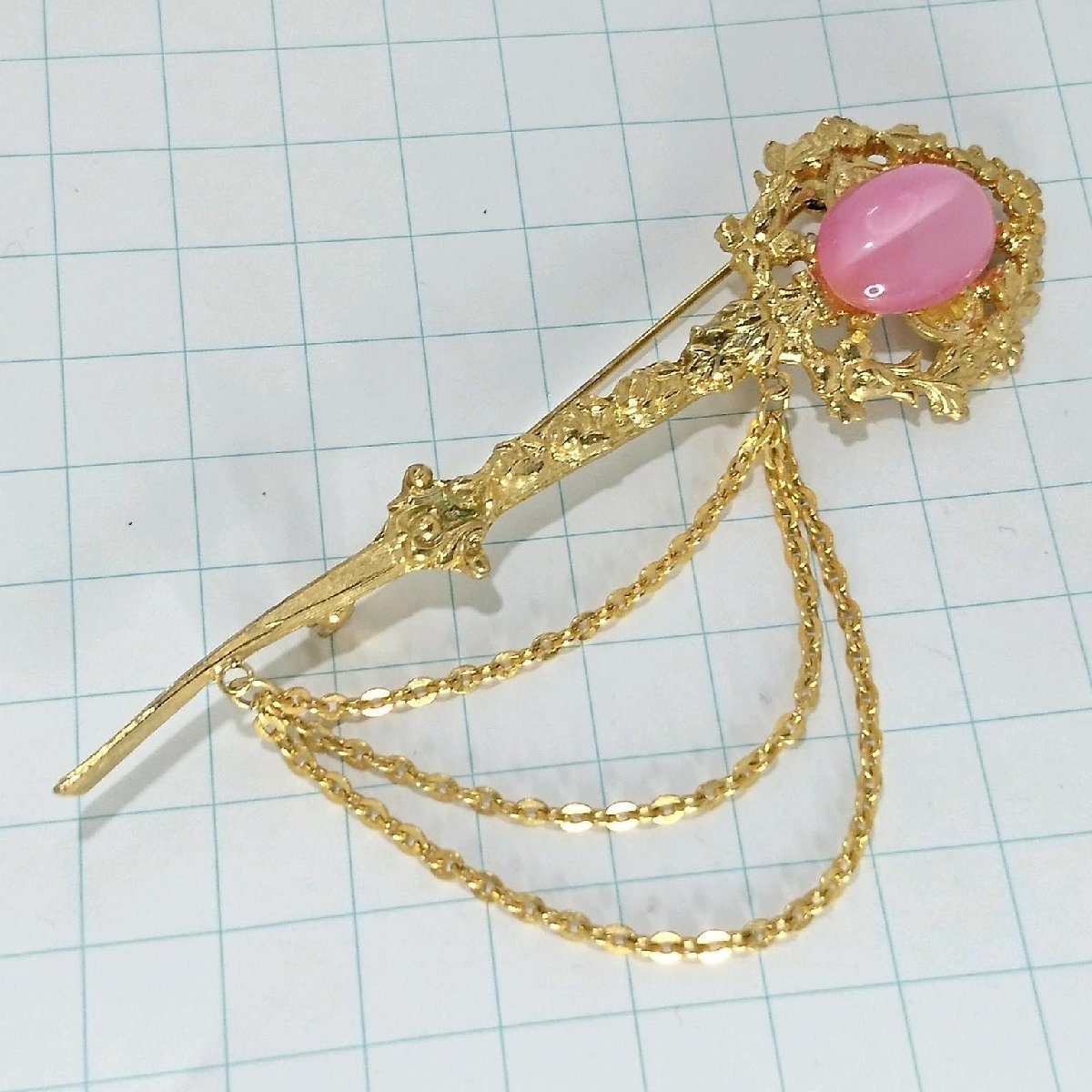 送料無料)ビンテージ☆大玉ピンクキャッツアイ チェーン☆アンティーク ブローチ A20941