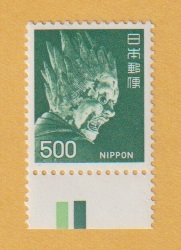 【普通切手】 第4次ローマ字入り《500円》 伐折羅大将 (カラーマーク) 1974年