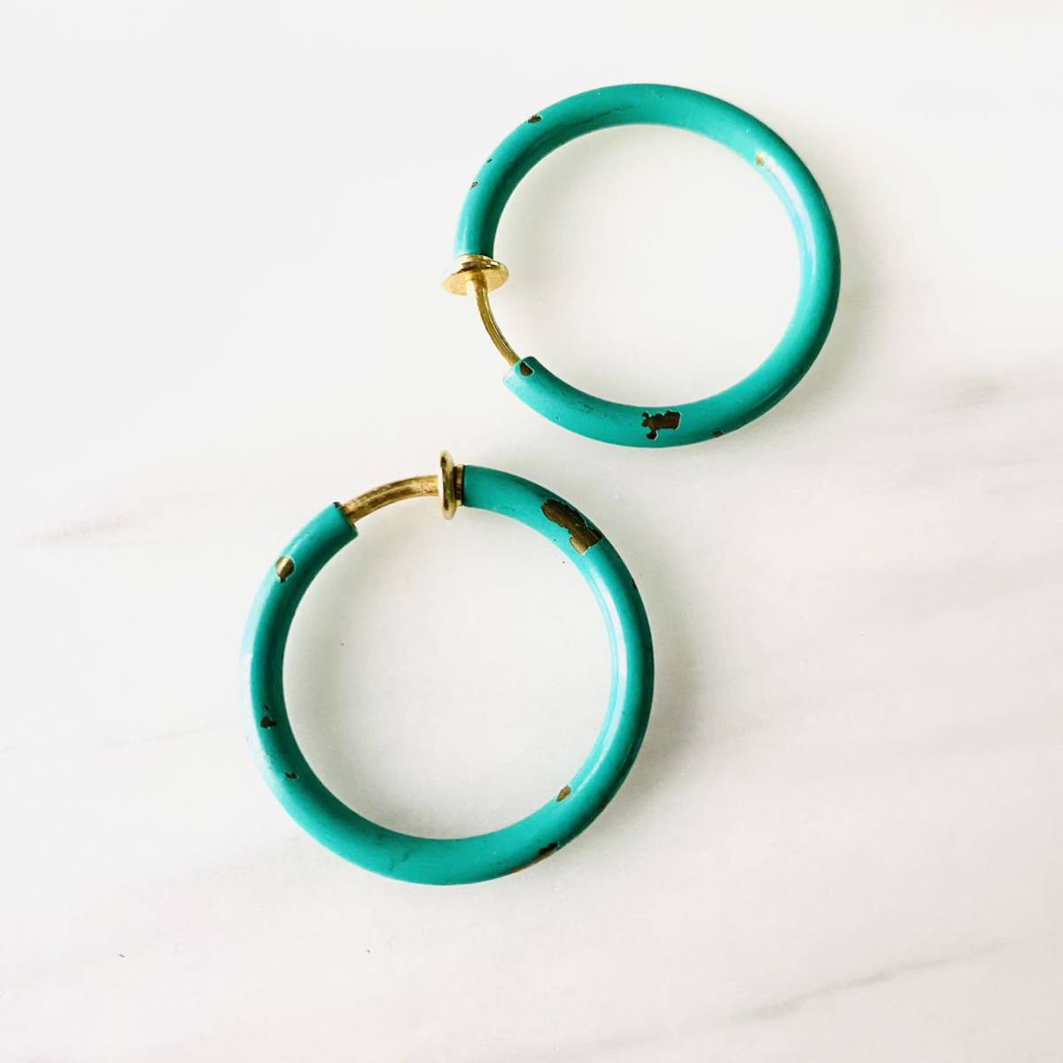 グリーンとブルーの中間のようなお色で、レトロ感のある色味です。