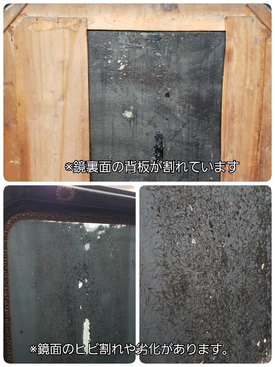 輸送の際に破損する場合もございますので御了承のほどお願いいたします。 時代物ですので木の劣化、ワレ、汚れがあります。 鏡面は損傷が激しいので修理されることをオススメします。 担当者コメント |