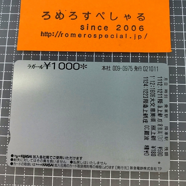 ∞●【使用済カード♯9443】スルッとKANSAIラガールカード「ティータイム」阪急電鉄【鉄道/電車】
