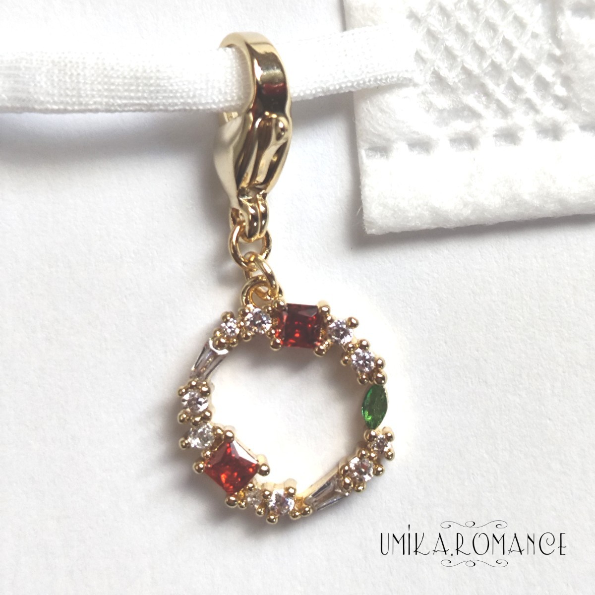 カラフルなクリスマスリースのチャームです。