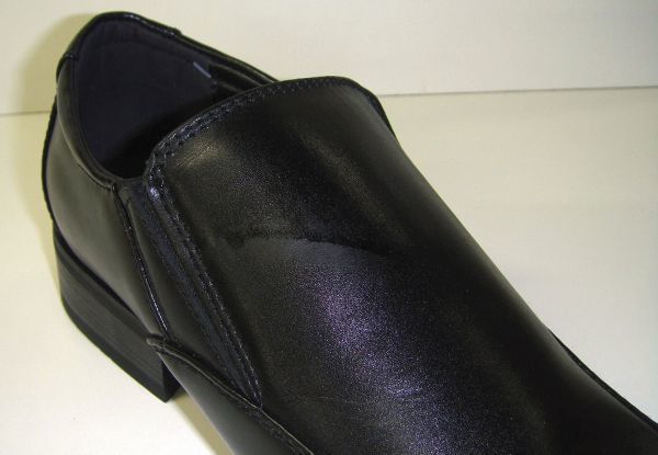 B品 06037 メンズ ビジカジシューズ 25.0cm ブラック スリッポン 一部牛革 幅広 ビジネス カジュアル ②