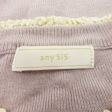エニィスィス エニシス anySiS ニット セーター クルーネック 長袖 もっちり ストレッチ ニュアンス レース 2 紫 パープル /CK13