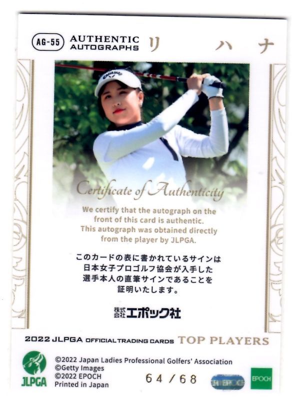 リ ハナ 2022 JLPGA オフィシャルトレーディングカード Top Players 直筆サインカード 64/68 68枚限定!
