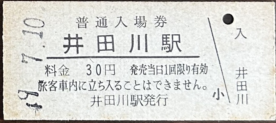 関西本線 井田川駅「30円券」入場券 無人化最終日券 S49.-7.10