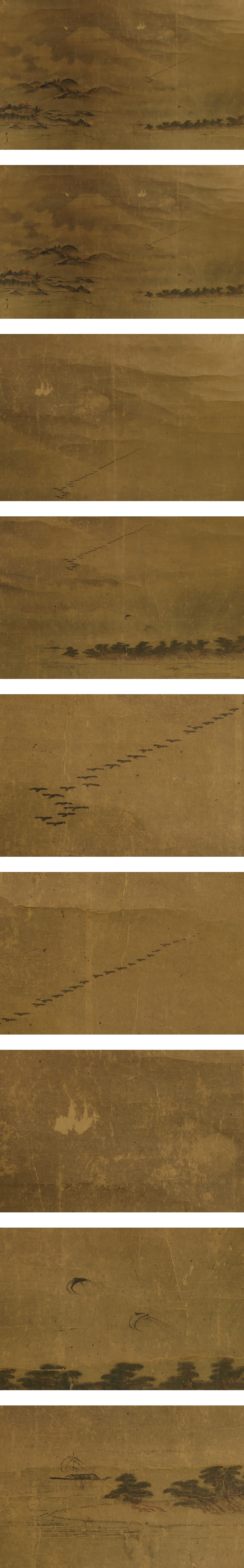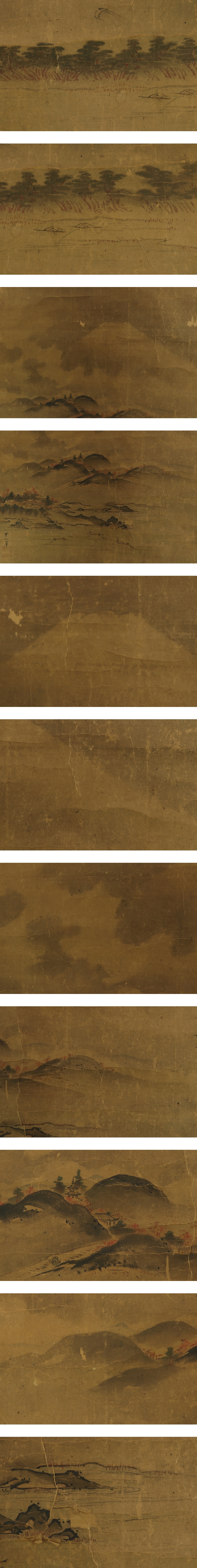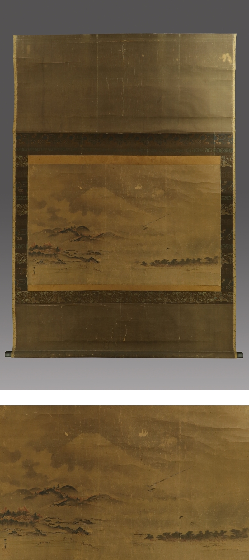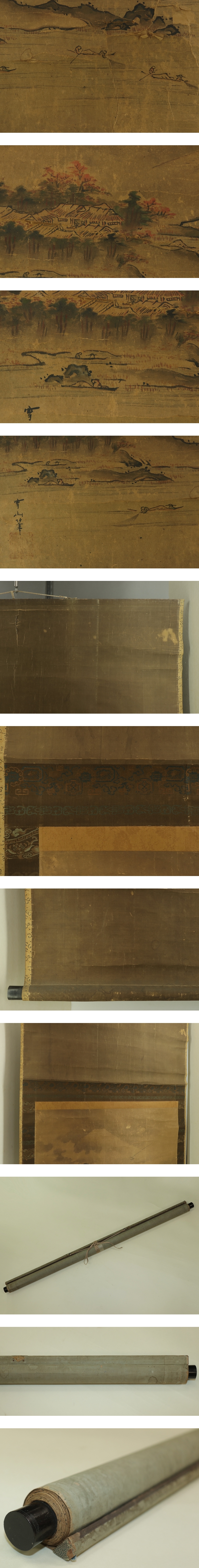 長塩雪山 ながしお-せつざん(1774-1833) 江戸時代後期の画家。 安永3年生まれ。京都の人。 出雲(島根県)母里藩の抱え絵師となり,狩野派を基調とした絵を描いた。 天保4年4月7日死去。60歳。名は義明。通称は平蔵,喜右衛門。別号に季信。 本紙は、染み、汚れ、強い折れ、強い皺、虫食い、破れ、生地剥れ、 強いヤケ、擦れがあります。 表装は、染み、汚れ、強い折れ、強い皺、虫食い、破れ、生地剥れ、ヤケ、擦れ、 ほつれ、くすみ、浮き、軸先に汚れ、風帯に傷みがあります。 【サイズ】 作品 横約82cm×縦約52cm 表装 横約95.5cm×縦約139cm |