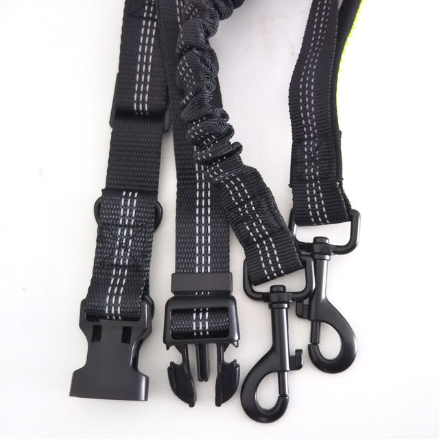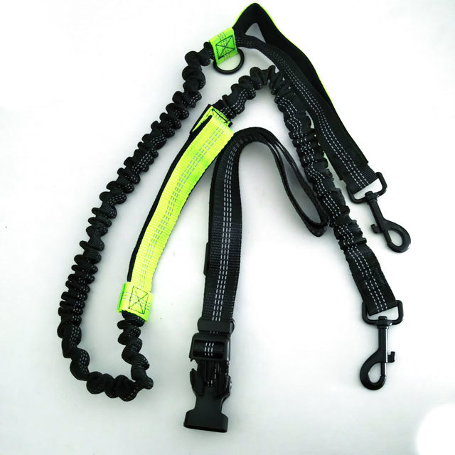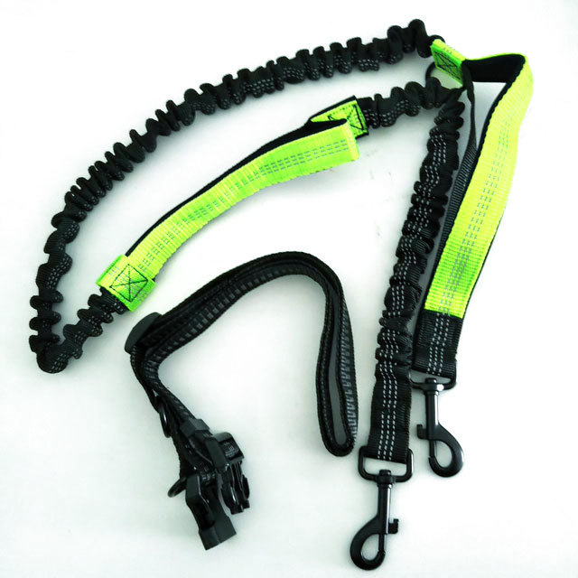 未使用 ペット用 リード 黒×黄緑 蛍光 腰ベルト付 伸縮 ウエストリード ハンズフリー 犬用 ペットグッズ 散歩 ジョギング ランニング