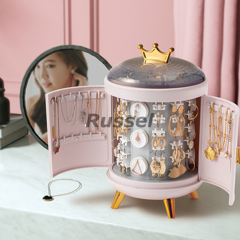ジュエリーボックス 大容量 クラウン型 取っ手 観音開き おしゃれ かわいい 収納 贈り物 プレゼント アクセサリー ネックレス ピンク