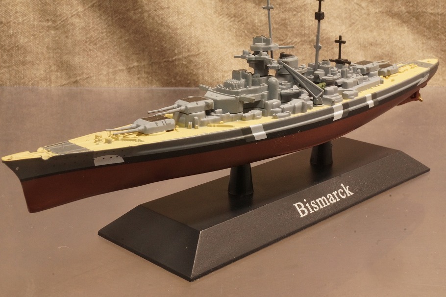 | ★ドイツ海軍 戦艦 ビスマルク 1/1250 です。 第二次世界大戦中のドイツ海軍最大の戦艦であるビスマルク級のネームシップ。 イギリス海軍と激しい砲撃戦の後、魚雷攻撃により撃沈、最新鋭の戦艦であったため、ドイツの損害は非常に大きいものとなった。 メーカー:DeAGOSTINI スケール:1/1250 長さ:約19cm 材質は金属(ダイキャスト)とプラスチックです。 | |