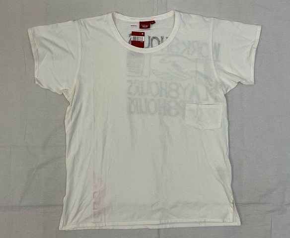 説明 | LEVI'SRED 2004SSコレクション ワークラインのカットソー。 ダブルステッチの1ポケTシャツです。 バックプリントのデザインでフロント右側にシミを汚れ加工。 2004年 MADE IN PORTUGAL |