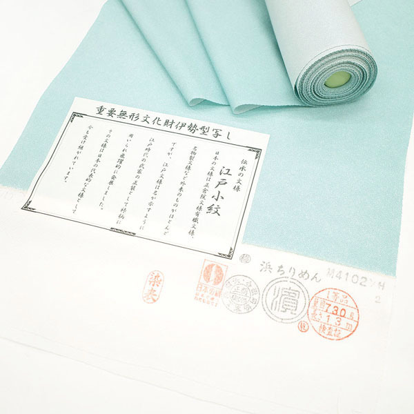 上質な 浜ちりめんの生地を使用した重要無形文化財 伊勢型写しによる江戸小紋 反物のご紹介です。