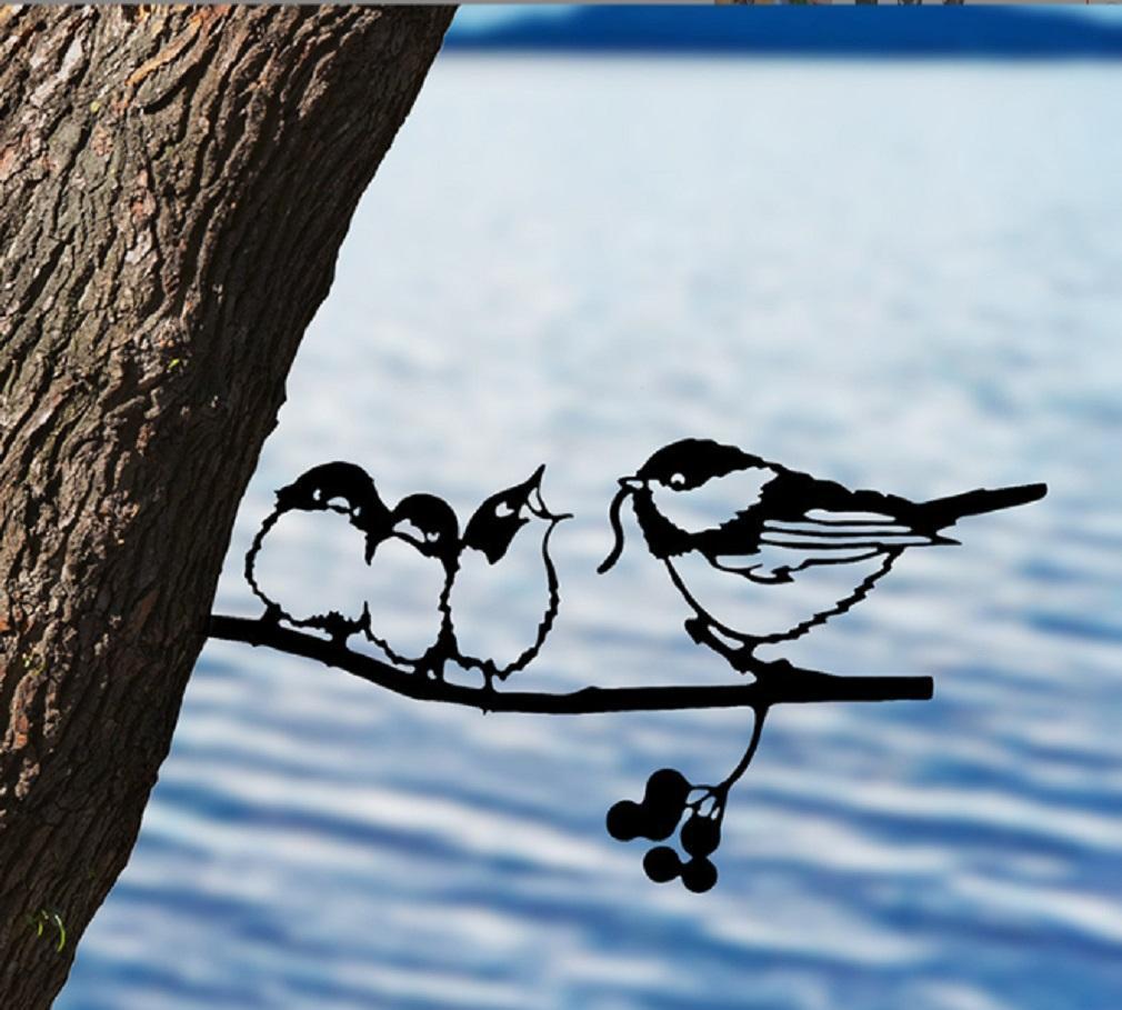 野鳥の親子 オブジェ インテリア ガーデニング 雑貨 アイアンプレート 北欧 3-2