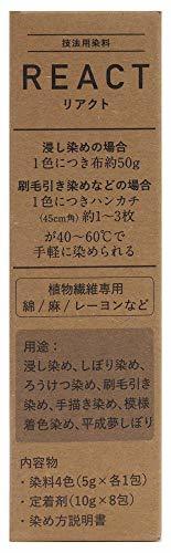 「桂屋ファイングッズ みや古染 技法用染料 REACT リアクト ビビッド/VIVID 4色セット」▼4901425214972▼(商品説明)ビビッド/VIVID 4色セット・ビビッド ・・Style:ビビッド/VIVID 4色セット・品番:-・仕様:みやこ染 技法用染料・色・柄:VIVID-ルージュ、パープル、ブリリアントブルー、グリン・内容:粉末染料 5g×4包、定着剤10g×8包・適する素材:綿・麻・レーヨン等の植物繊維