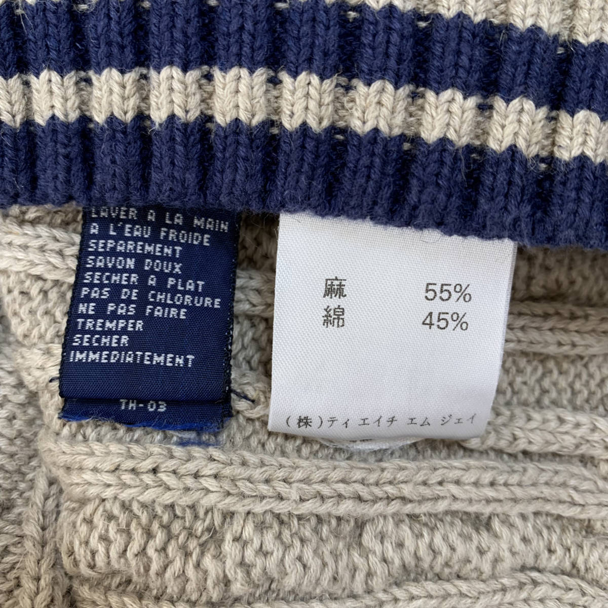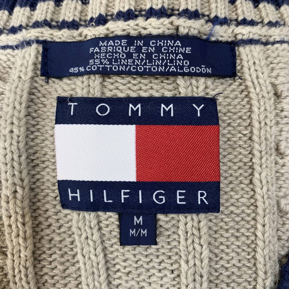 TOMMY HILFIGER/トミーヒルフィガー ニット ベスト メンズM ベージュ 紺/ネイビー バイカラー K3124