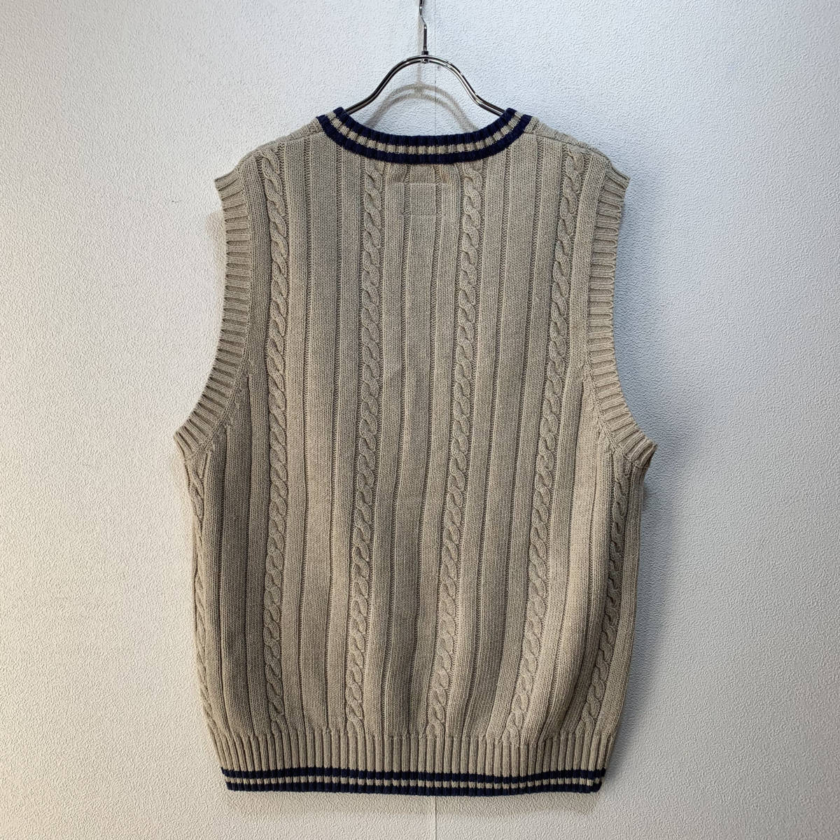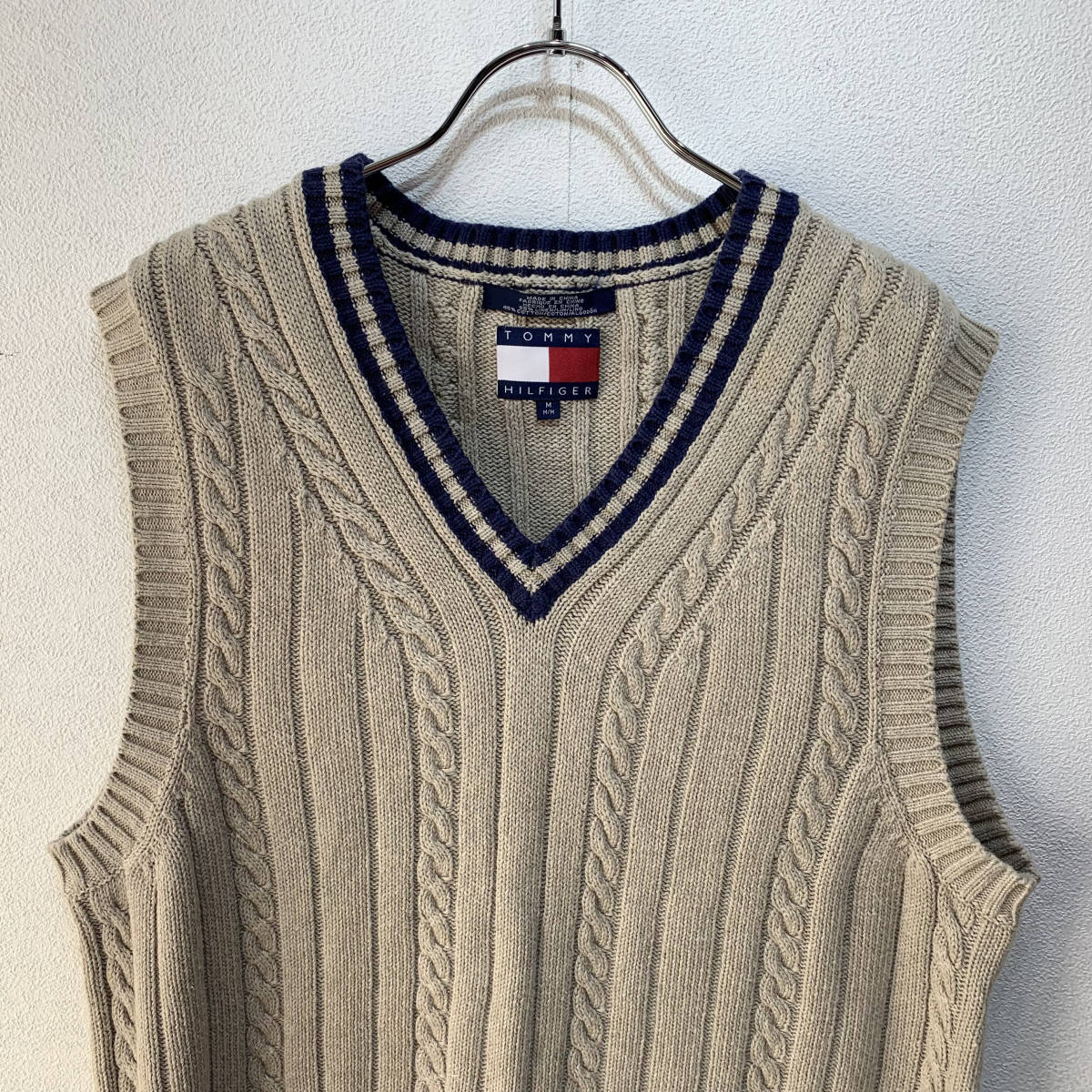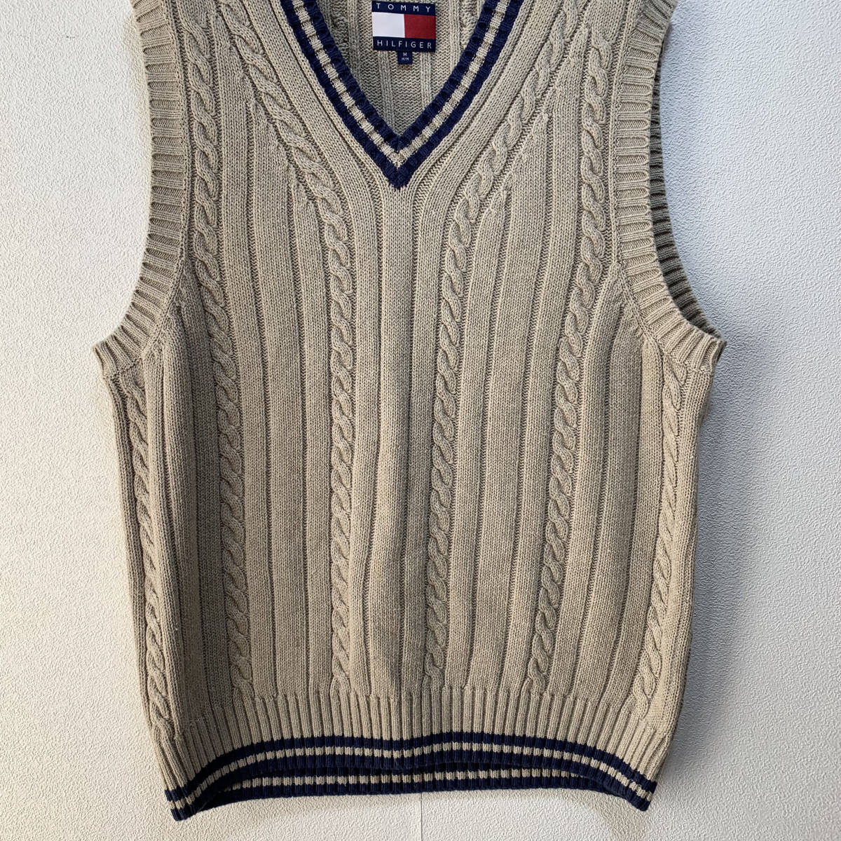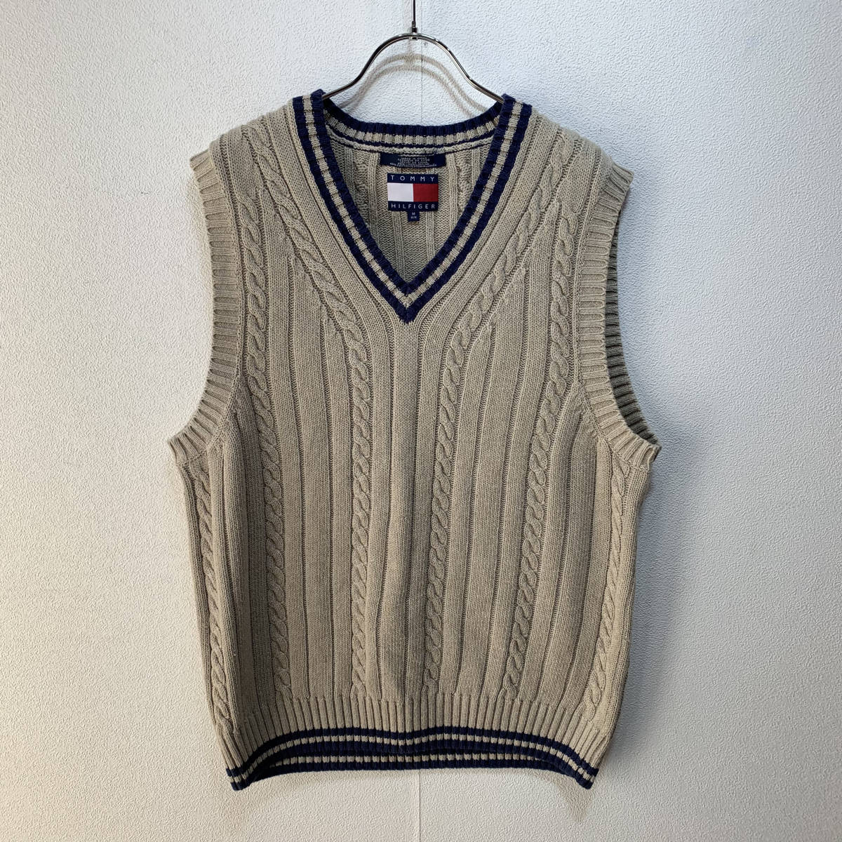 人気のTOMMY HILFIGER/トミーヒルフィガー ニット ベスト メンズM ベージュ 紺/ネイビー バイカラー K3124