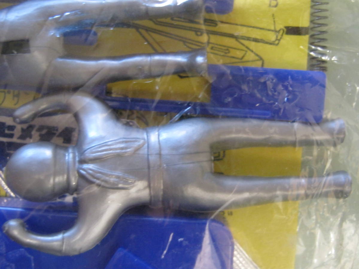 メーカー不明です。未開封・未組立です。部品の破損、欠品はありません。袋の中の台紙に組立図が印刷されています。発射台、仮面ライダーの部品を接着剤を使用して組み立ててバネの力で人形を発射して飛ばして遊ぶ物です。接着剤が付属していますが製造からかなり経過していて劣化して使用できません。仮面ライダーの人形サイズは約6.3㎝位 発射台が約4.9㎝×6.9㎝位(パッケージの上から測りました。)