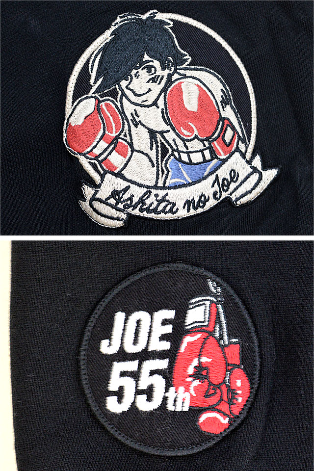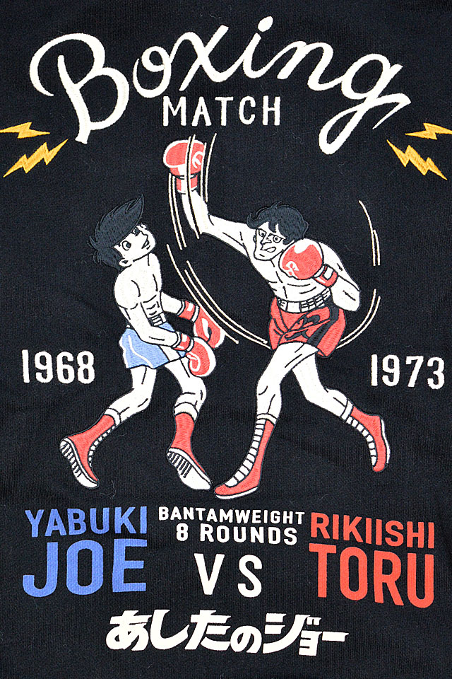 「あしたのジョー スウェット裏毛ジップパーカー(JOE-2303)」のご紹介です。 今回は、あの有名作品のコラボレーションアイテムです! ボクシングをテーマに、矢吹丈が奮闘する様子を描いたスポーツ漫画『あしたのジョー』。 連載開始から50周年を迎える作品をモチーフにデザインされた、夢のコラボアイテムです。 今回は、主人公の矢吹丈とライバルである力石徹をモチーフの主役に採用しました。 背中にはリング上で戦う二人の姿が描かれています。 フロント左胸、左袖にはワッペン風のモチーフを配置。 柄は総刺繍で表現されており、豪華な仕上がりが魅力的です。 ボディーには、裏毛タイプのスウェット生地を採用。 ©高森朝雄・ちばてつや/講談社 | |||||||||||||||||||||||||