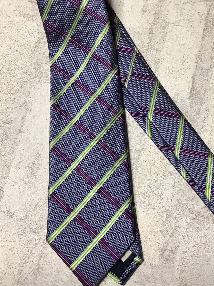 新品未使用 ノーブランドだから安い 日本製ネクタイ  シルク100%お買い得サービス ブルーグレー グリーンパープルラインのチェック柄