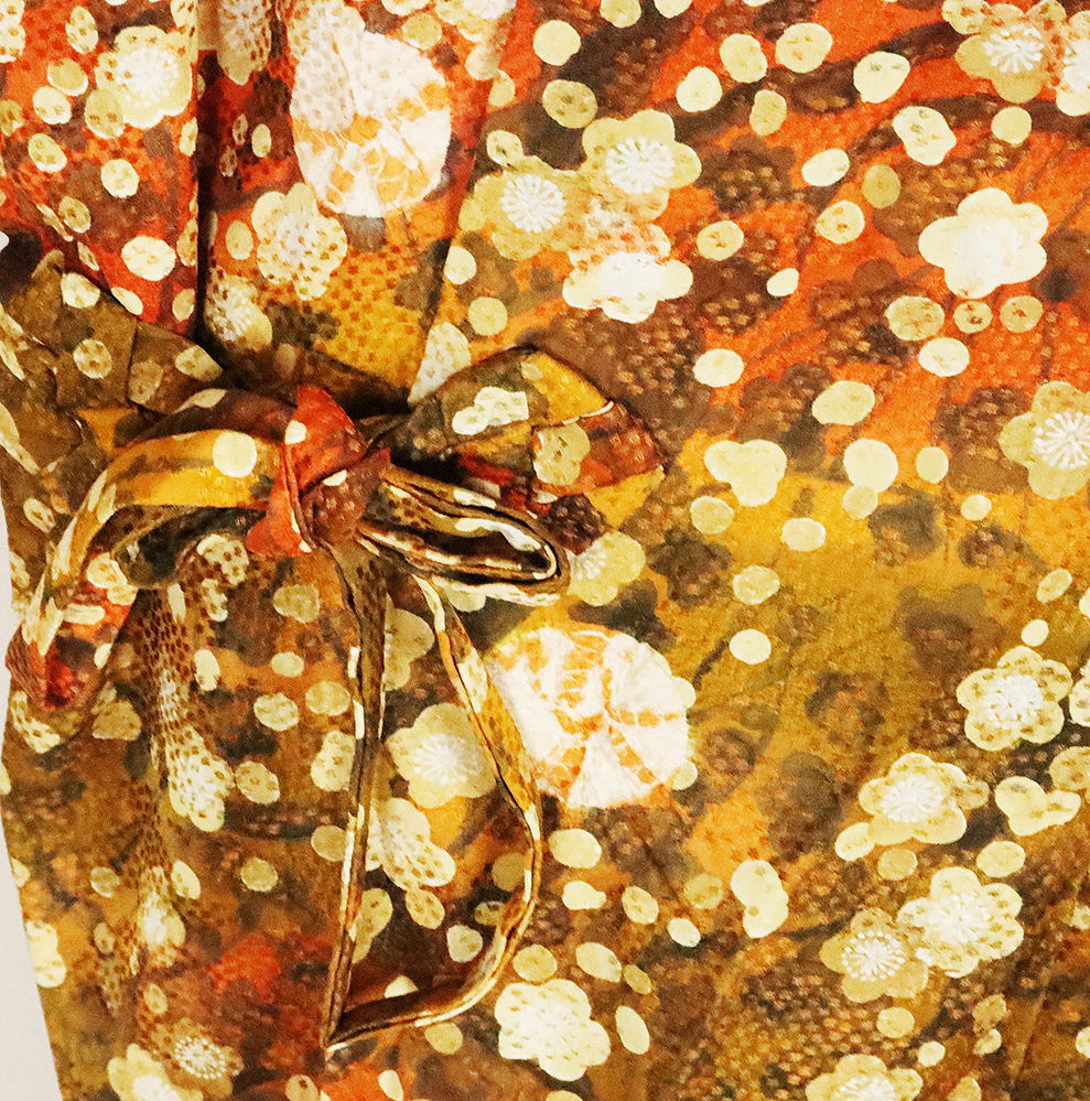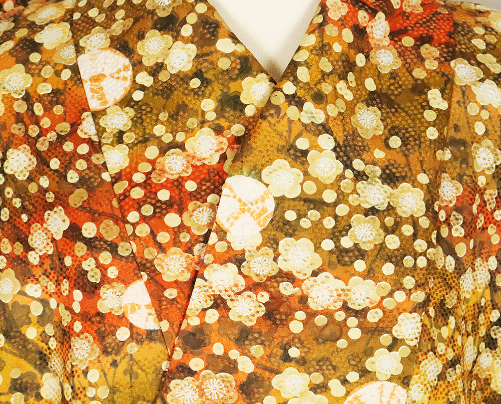 | 色・柄 | 和装コート 道中着 橙色・緑ぼかし地絞り花・梅花 (写真では上手く色が出ない場合があります。ご了承下さい) |