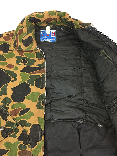 強度のあるコットンシェル・裏地中綿入りキルティングライナー・後裾に大容量ゲームポケット。