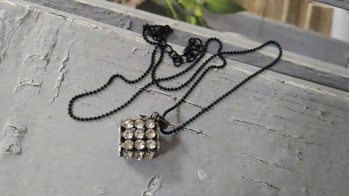 ラインストーン・キューブ×黒チェーン ネックレス | |||