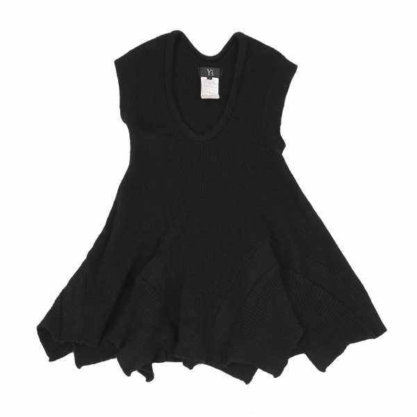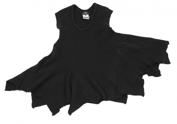 | ワイズY's 裾カーブ切替ノースリーブニットトップス 黒2 |