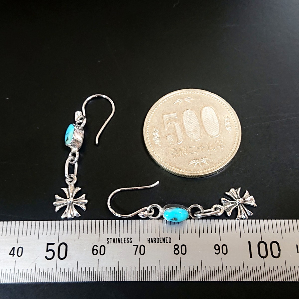 ターコイズの天然石とクロスをデザインしたお洒落なピアス☆