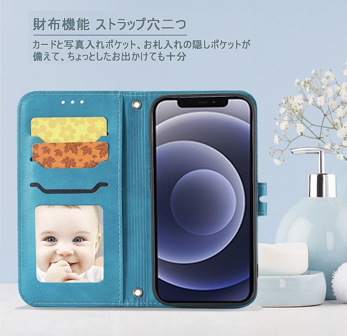【功能 &機能性 4in1】①横置きスタンド機能:動画視聴でも手に持つ必要がなく、超楽々動画視聴が可能です;②財布型:ケースの裏側に3つのカードポケットとお札入れのフリーポケット一つあり、ショップでのポイントカード、交通機関でのスムーズな移動をサポートでき、 SUICA / PASMO / ポイントカード / メモ 等収納できる