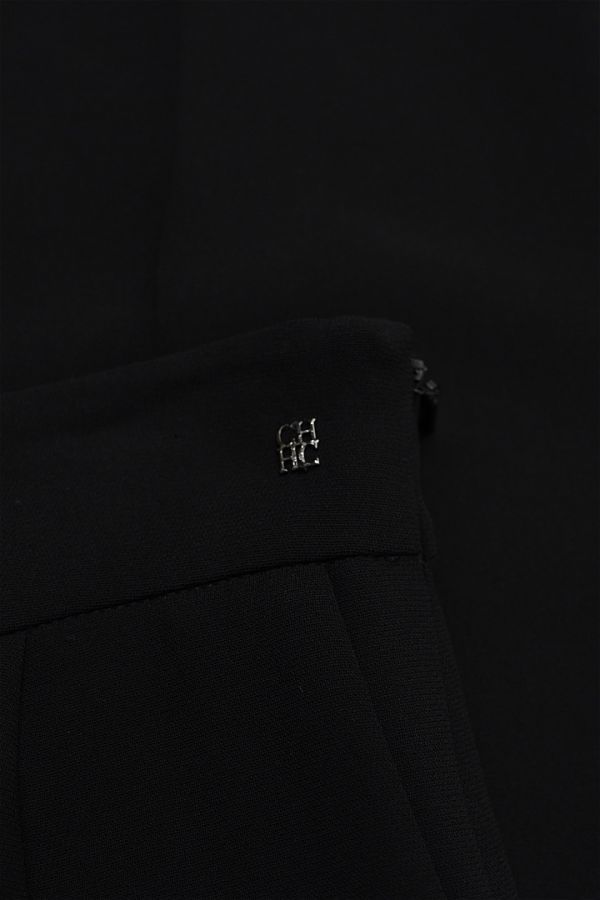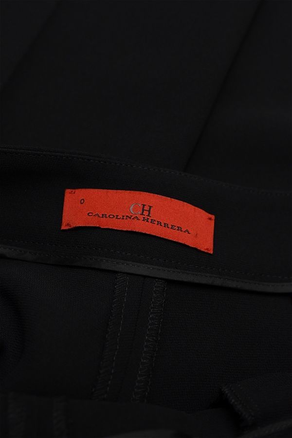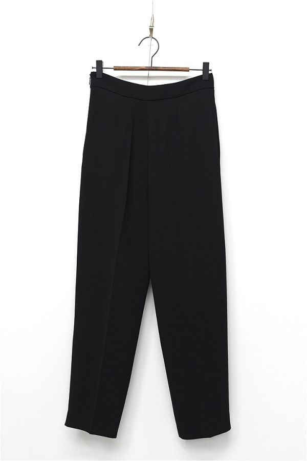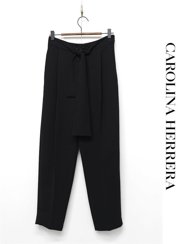 HGC-G394/美品 CAROLINA HERRERA キャロリーナヘレラ テーパードパンツ スラックス ハイウエスト 1タック リボン 0 S 黒