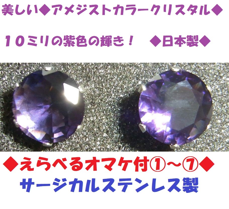 ◆ 6ct 大粒 10ミリ 紫水晶 アメジスト カラー クリスタル ピアス ステンレス製◆ | |||