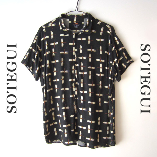 美品 ポルトガル製 SOTEGUI/ソテグイ★ トンボ柄 半袖シャツ 黒