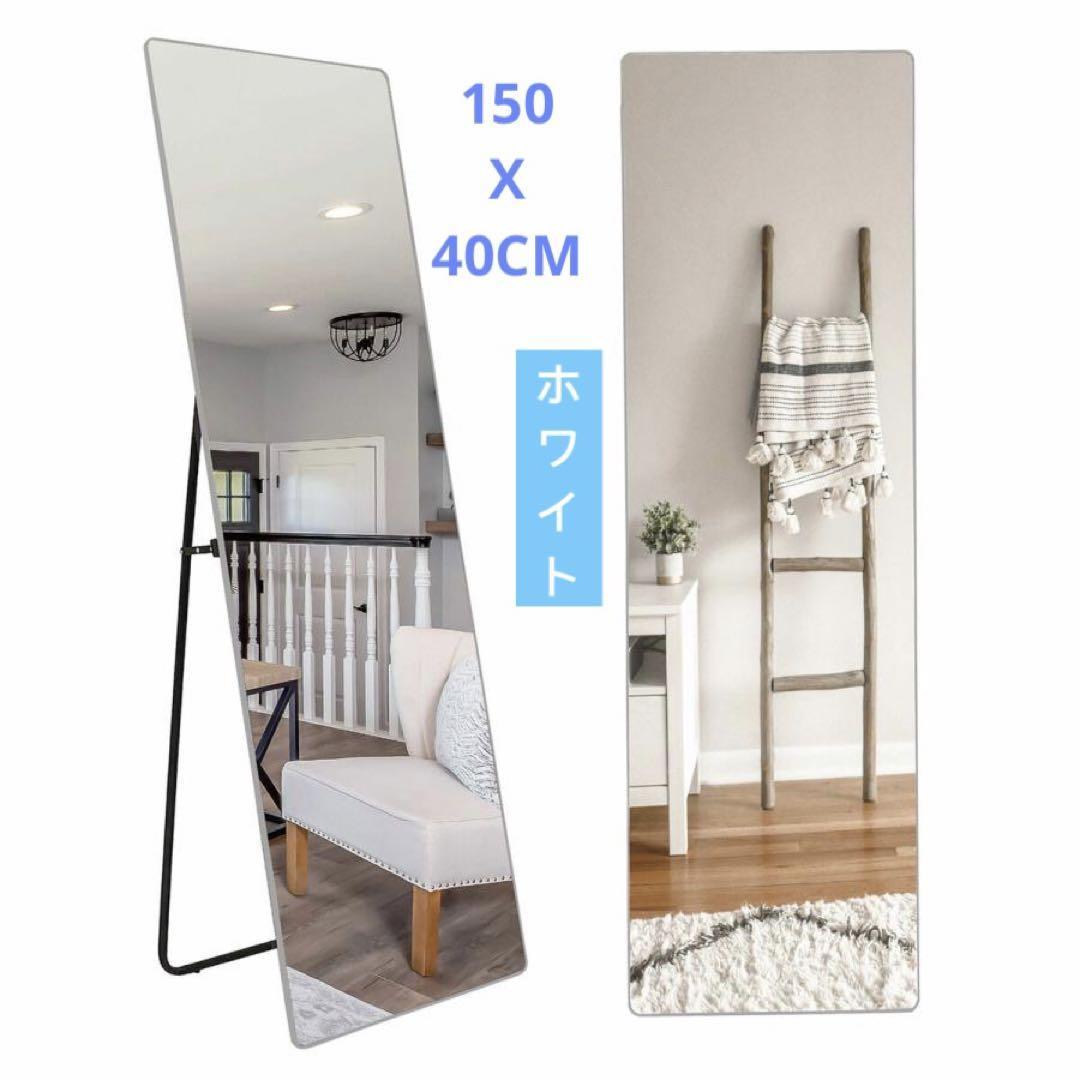 スタンドミラー 壁掛け 全身 鏡 姿見鏡 丸角 大型 軽量 薄いフレーム おしゃれ 150cmx40cm 鏡 アルミ合金フレーム 飛散防止加工 店舗用 業務用 家庭用 3色