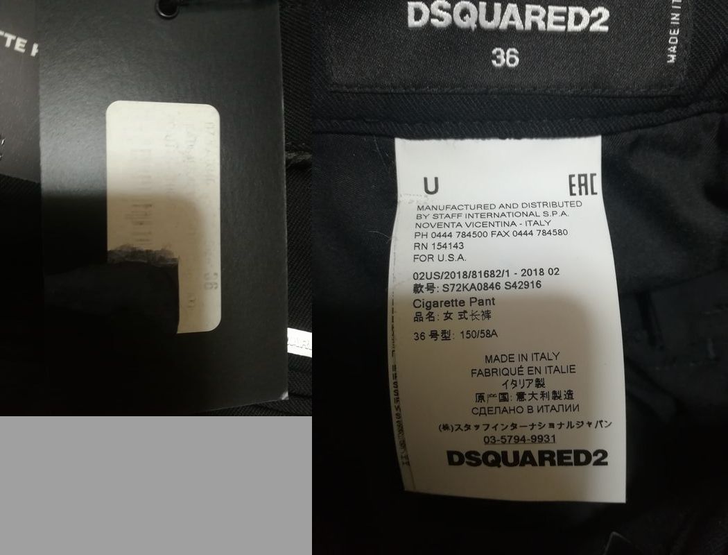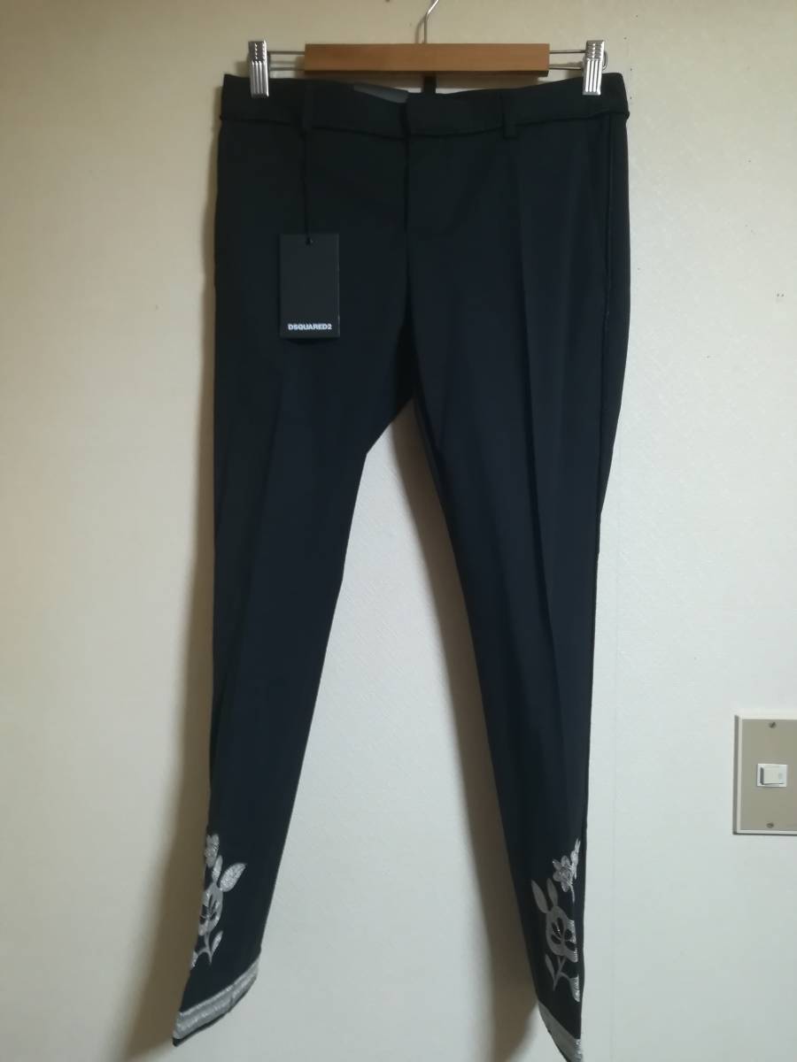 新品 dsquared2 cigarette fit 裾装飾 ウールストレッチパンツ 黒 サイズ36