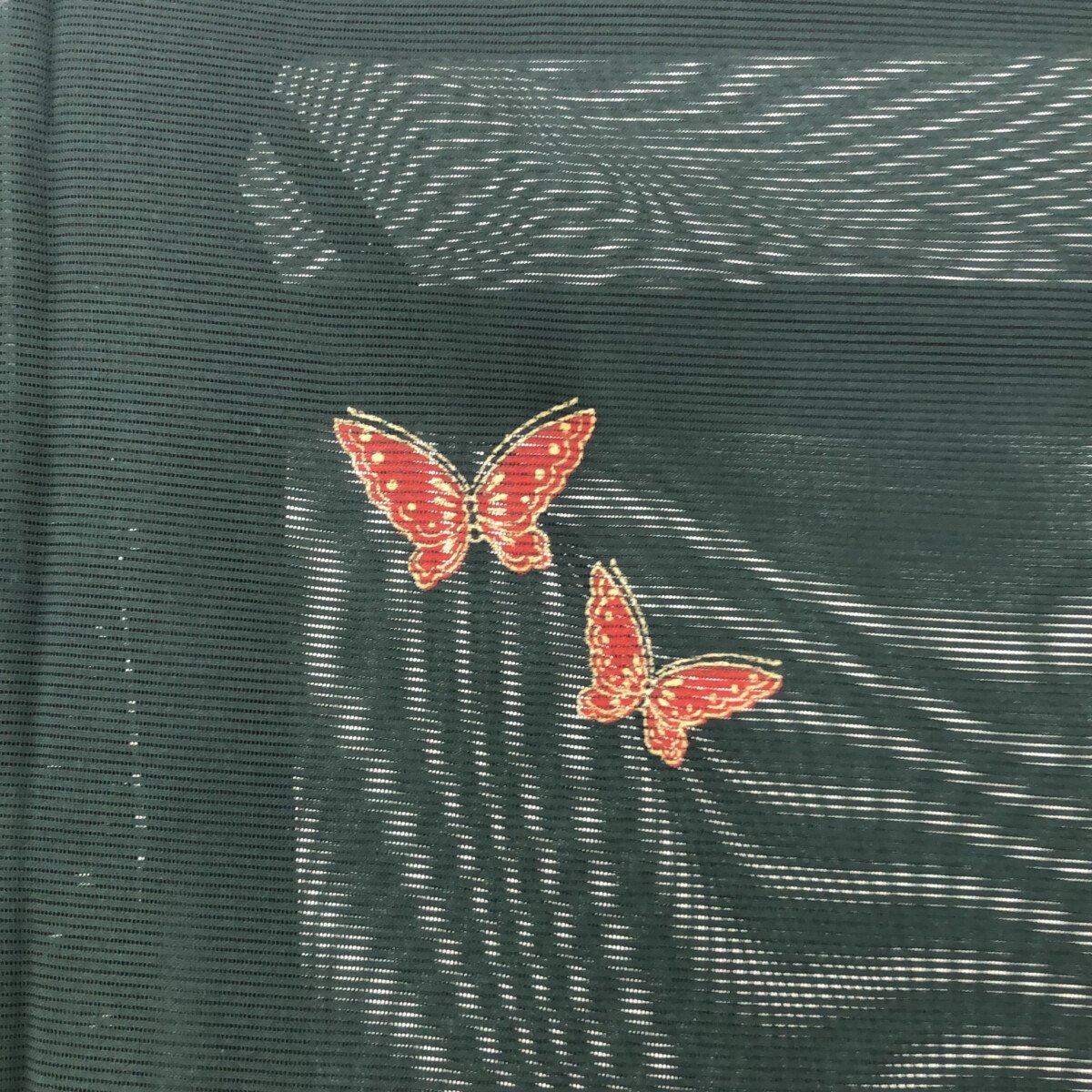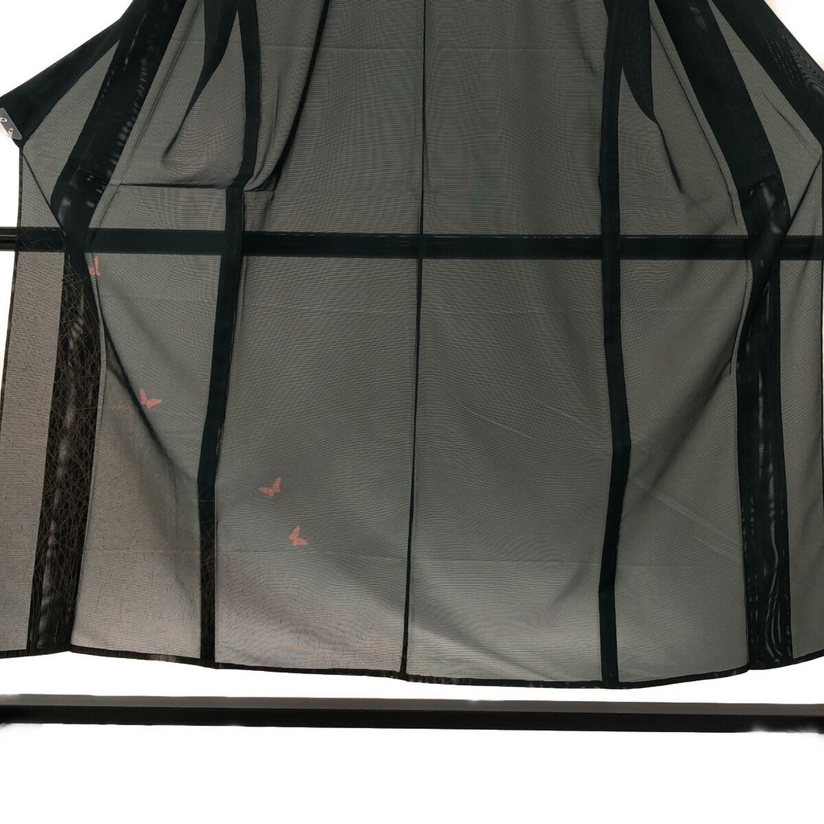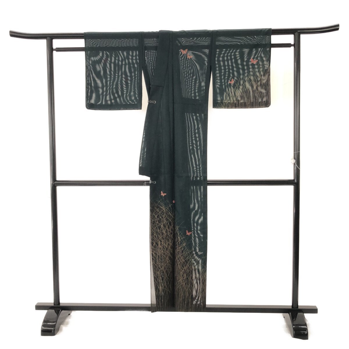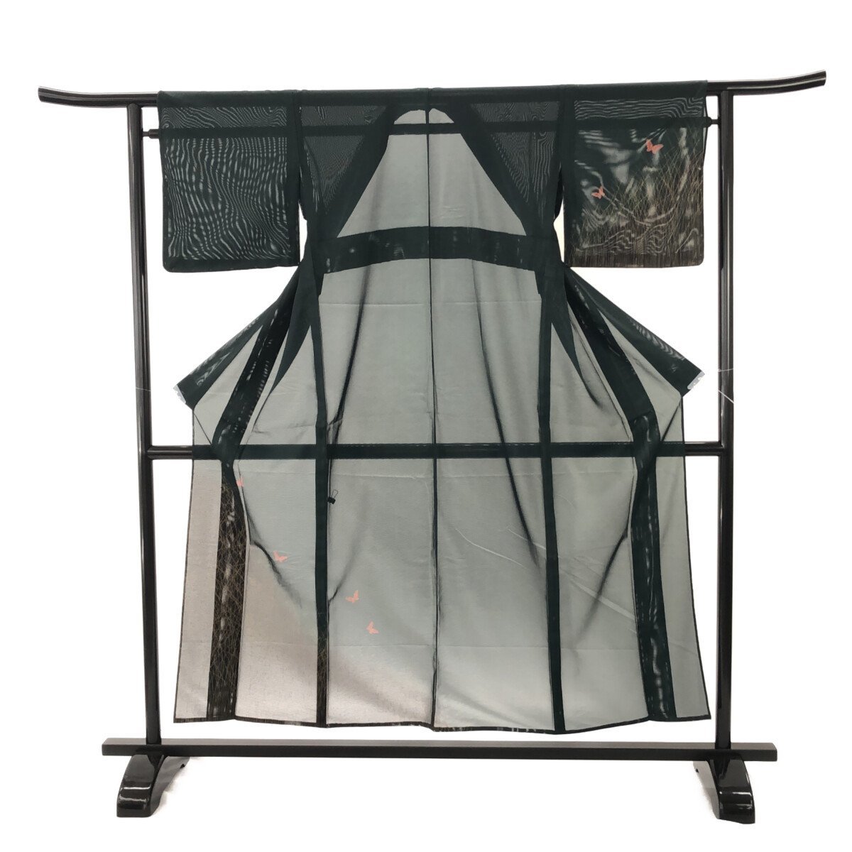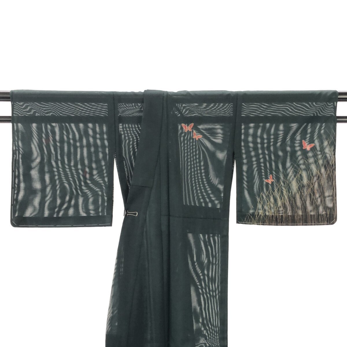 附下/未使用品/絽/美品/正絹/深いグリーン/すすきと蝶/バチ衿/夏/仕立上がり/適応身長145~153㎝【3707】 |
